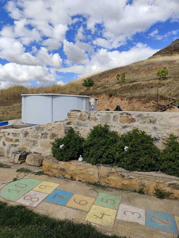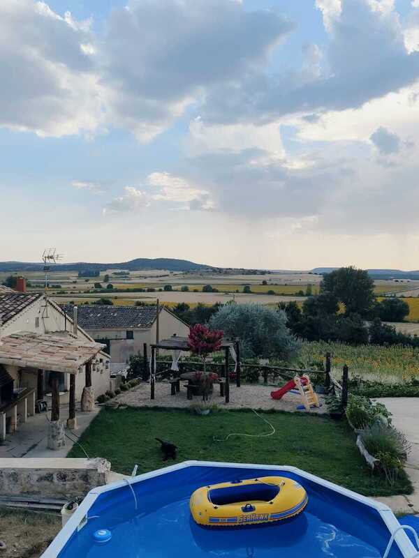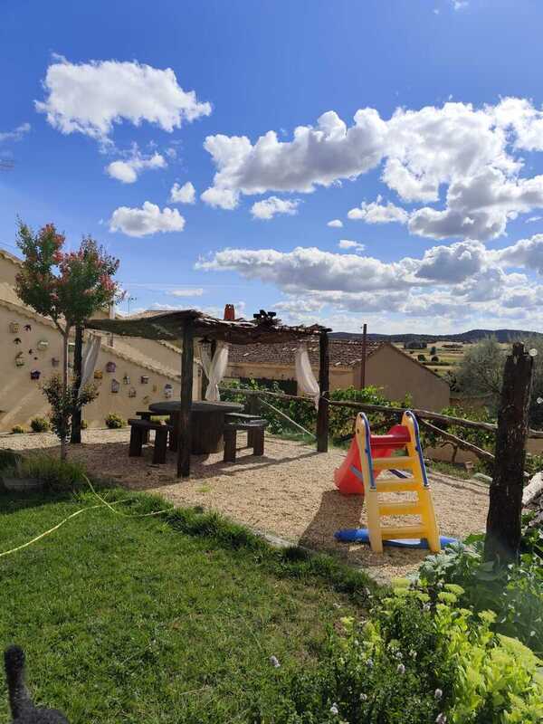 La barra de obra, construida a partir de una vieja cuba recuperada de las pequeñas bodegas del pueblo, sirve de separación, entre la zona de comedor y la funcional cocina, dotada de todos los útiles (vajilla, cubertería, cazuelas, sartenes, ...) y electrodomésticos (lavadora, lavavajillas, microondas, plancha, batidora, cafetera,…) necesarios para hacer su estancia lo más cómoda posible.